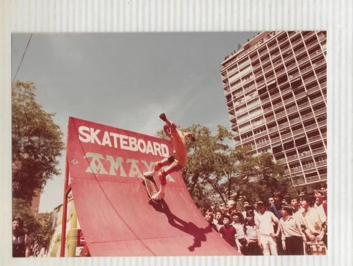 Aunque nací en Madrid, en el glorioso barrio de Chamberí, por circunstancias laborales de mi padre viví la preadolescencia, esa franja de edad tan marcada, fuera de allí. Primero en San Sebastián, en los años de plomo, de crisis y violencia, pero que la mente de un niño naturalmente obviaba en una lógica sensibilidad selectiva. Lejos de ser consciente de lo que estaba pasando, lo que molaba de ese momento era ver las primeras tablas de surf, como la de Perico Sánchez Albornoz, un amigo de mi padre, en la playa de Zarautz. Y por supuesto las primeras camisetas con bolsillo a la altura del corazón y con llamativos estampados en la espalda. También los primeros patinetes, muchos de ellos aún tuneados de manera artesanal ante la falta de suministros. Las “John Smith” antes de que supiéramos que eran las “Converse” y películas como “El gran miércoles”, “Skateboard: The Movie”, “Go for It!” y mi favorita, “Freewheelin”. Toda una explosión de cosas novedosas que te invadía generándote una cierta ansiedad, sobre todo cuando cruzabas la frontera y veías todo lo que había en esos escaparates de Biarritz, Anglet, Hendaya o San Juan de Luz. Lugares increíbles de los que recuerdo algo así como flashes temporales, que incluso incluyen hasta el olor que generaba la acumulación de ruedas “Bones”, “Kryptonics” o “Santa Cruz”, que conformaban preciosas estampas cromáticas en los estantes.